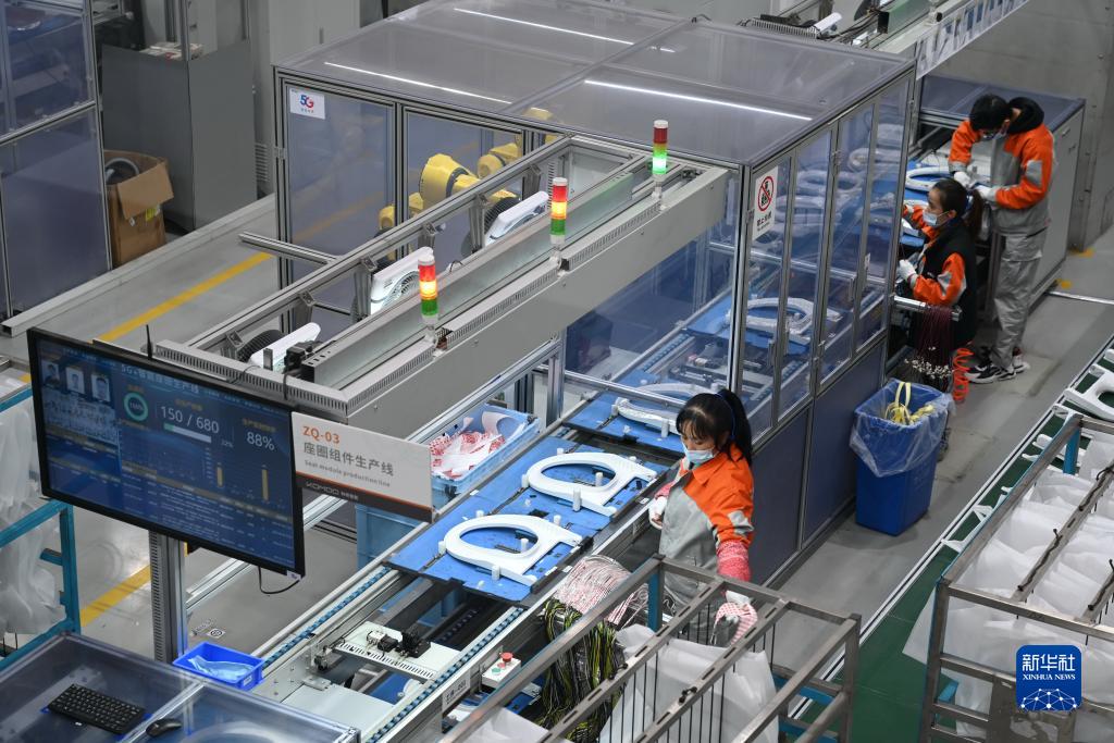 位于福建泉州的九牧集團是國內衛浴龍頭企業,在其5G智能工廠生產車間,各種物料智能傳遞,電子顯示屏實時顯示車間運行情況,機器人與產業工人在流水線上各司其職、精準作業。