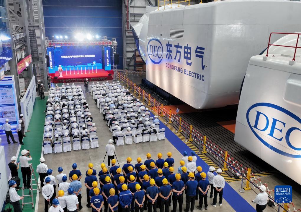 18兆瓦海上直驅風電機組在福建三峽海上風電國際產業園下線(2023年11月10日攝)。新華社記者 林善傳 攝