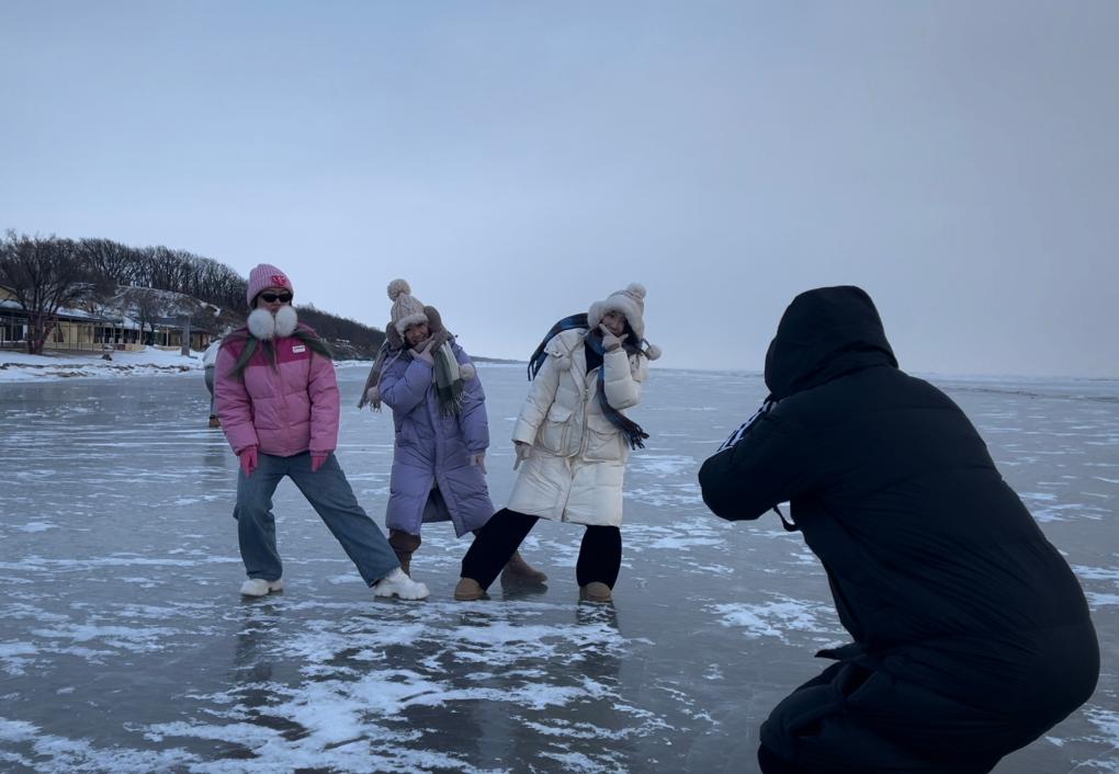 冬日的黑龍江省雞西市興凱湖,一片“千里冰封”的壯闊景象。游客走上冰面,一邊“打出溜滑”,一邊欣賞冰雪美景。廣東游客趙嘉琪說(shuō):“在廣州這么大塊的冰只能在溜冰場(chǎng)看到,但在這里是自然風(fēng)光,覺(jué)得特別新奇,特別美。”