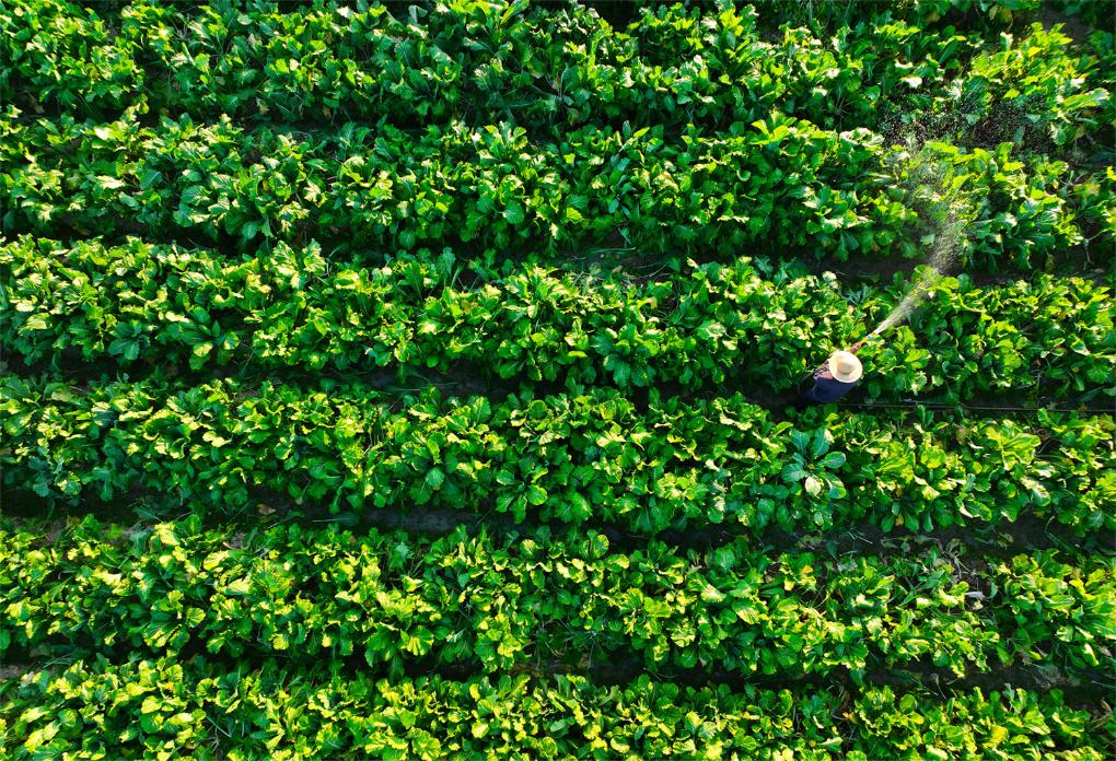 伴着晨间微光,增城区小楼镇菜农黄莉莉下田采收迟菜心。“叶子上还带着露水,很鲜的,直接生吃都很甜的。”她说。