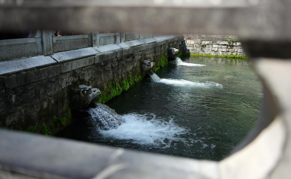 2024年8月3日,位于济南市区的五莲泉泉水流淌。新华社记者 徐速绘 摄