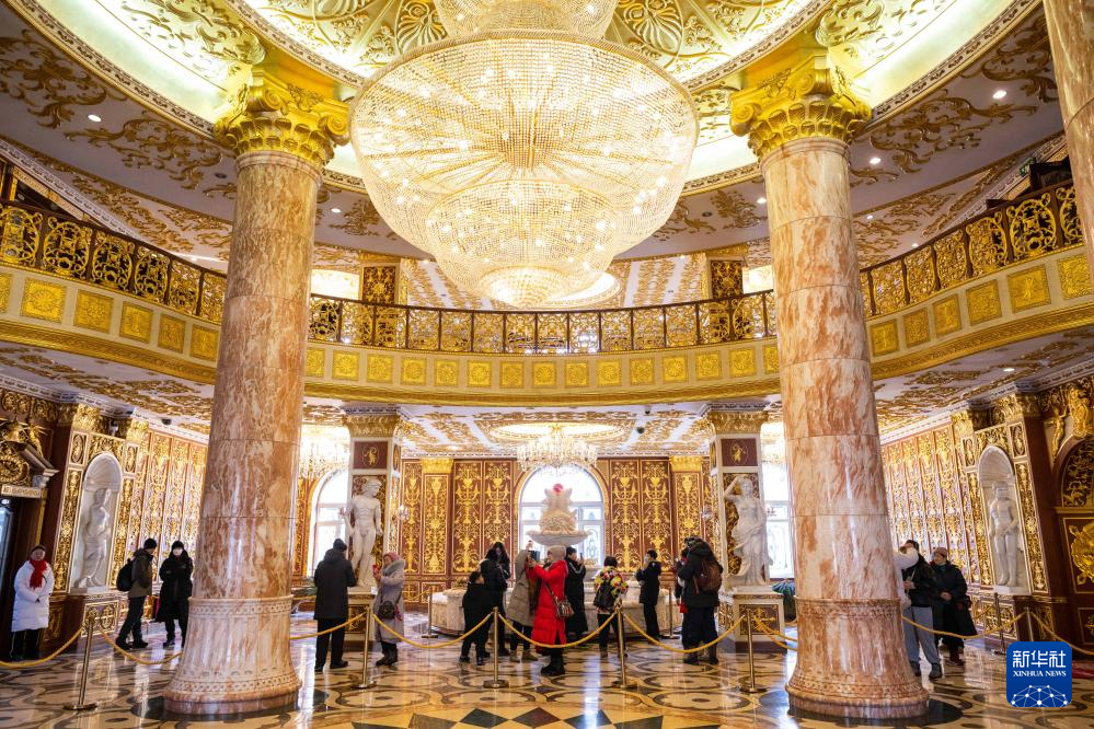 在哈尔滨市道外区,游客在哈药六厂主楼中参观(2024年1月17日摄)。哈药六厂主楼为欧式风格,雄伟壮观,被网友称为“东北卢浮宫”,成为哈尔滨旅游的热门打卡地。新华社记者 谢剑飞 摄