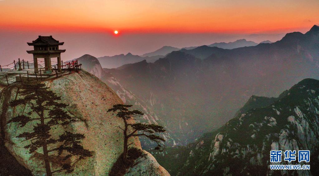 8月15日在華山東峰拍攝的日出(無人機照片)。
