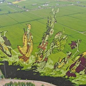 近日,遼寧省沈陽市沈北新區錫伯龍地創意農業產業園的稻田畫進入觀賞期,多種色彩的水稻組成稻田畫,吸引眾多游人前來觀光體驗。