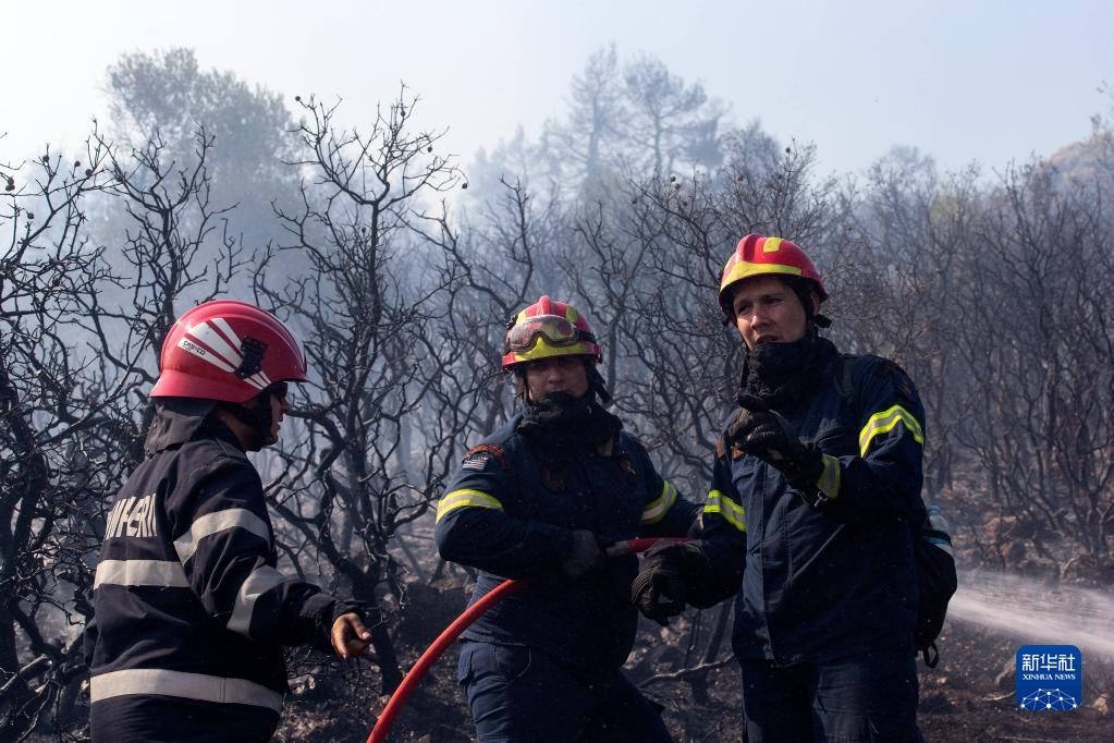 8月23日,消防員在希臘雅典西北的維利亞村進(jìn)行滅火作業(yè)。