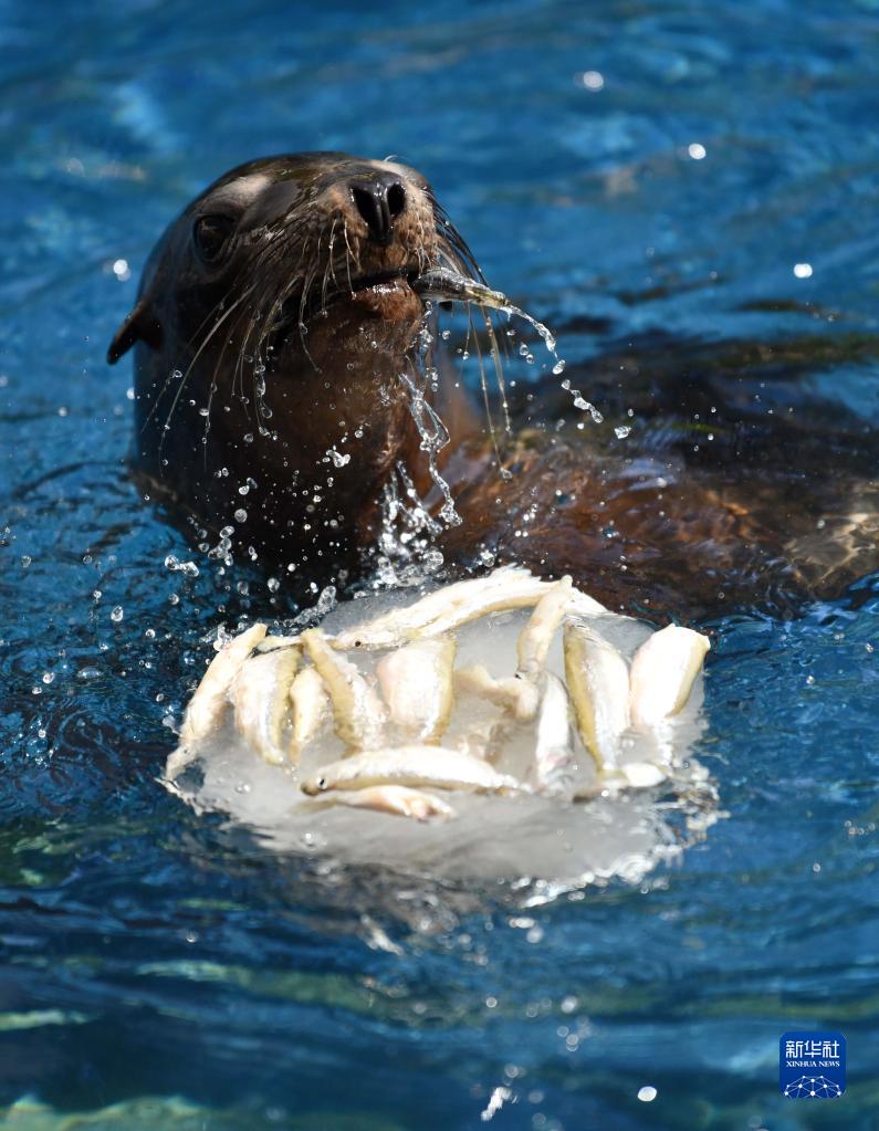 8月26日,一只海獅在意大利羅馬動(dòng)物園享用冰凍食物。
