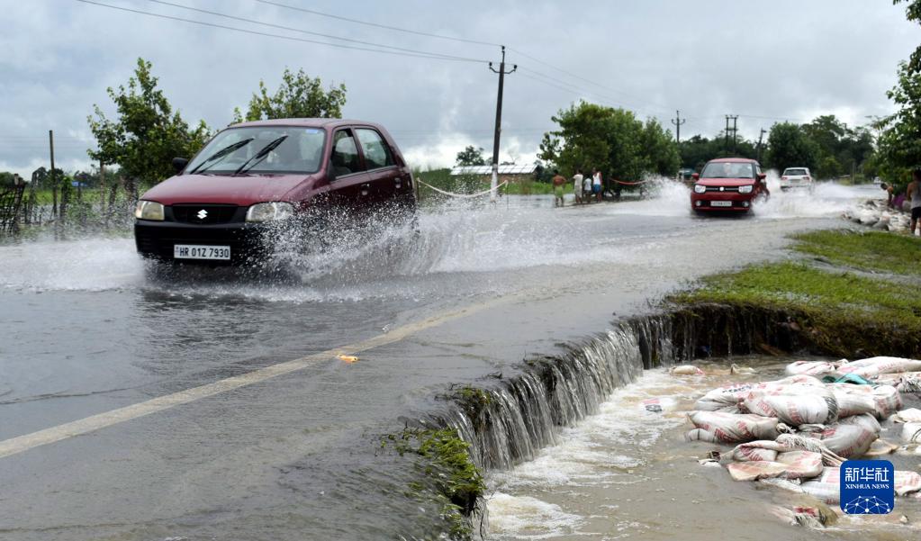 8月28日,汽車通過印度阿薩姆邦一處積水的路段。