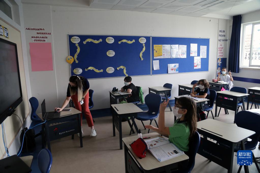 9月1日,學生們戴著口罩在土耳其安卡拉一所學校上課。