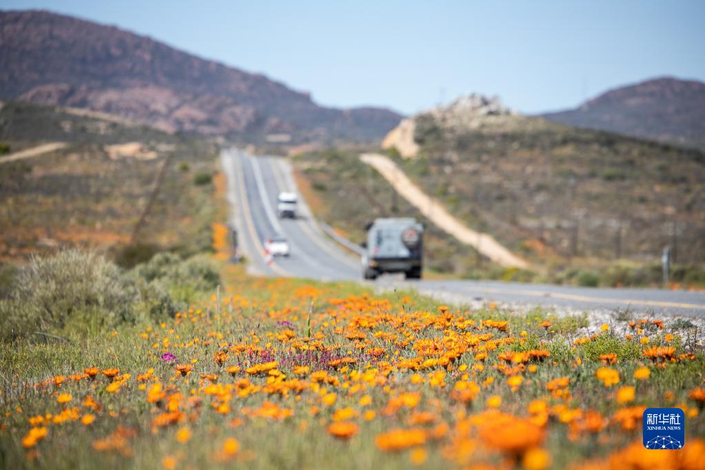 這是8月30日在南非北開普省拍攝的公路邊的野花。