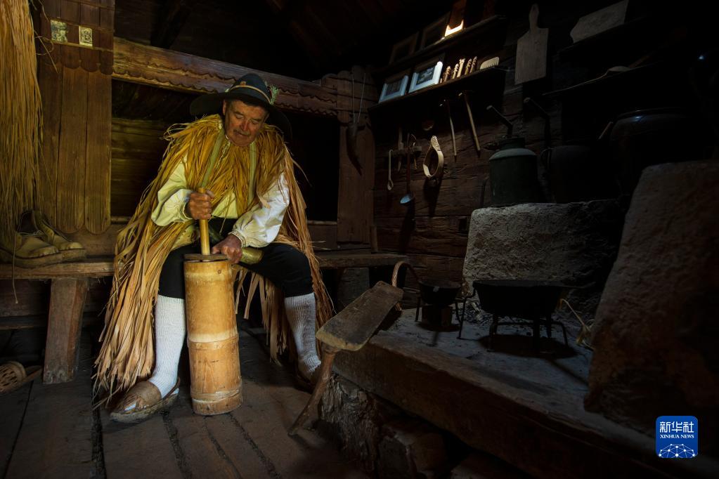 9月8日,斯洛文尼亞維利卡普拉尼那高地的老牧民彼得展示用傳統方法制作酸奶。