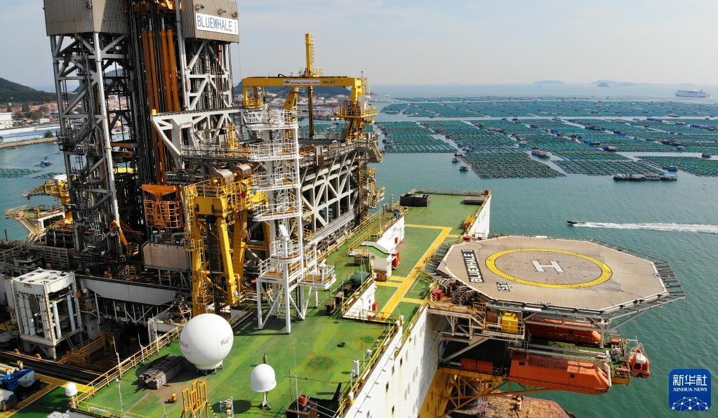 10月18日拍攝的“藍鯨1號”平臺(無人機照片)。