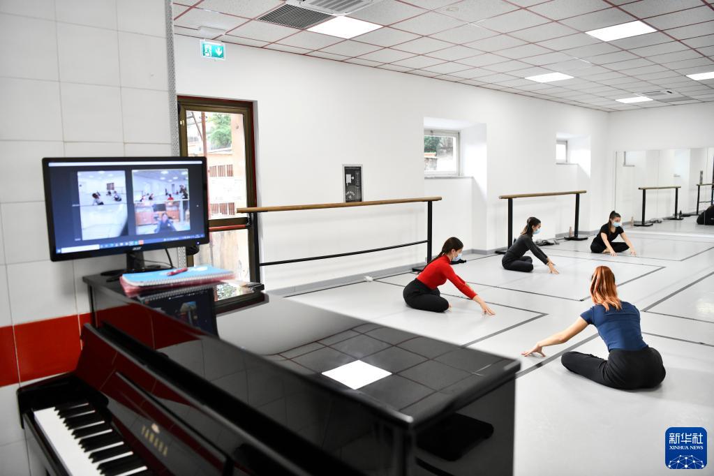 意大利羅馬國家舞蹈學院于近日開啟新學年,課程通過線上線下相結合的方式開展。學生參加線下課時必須遵守佩戴口罩、保持社交距離等防疫規定,而因疫情不能到場的教師和學生可通過網絡形式參與。