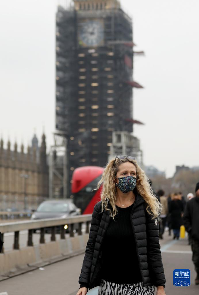 11月24日,在英國倫敦,佩戴口罩的行人走過威斯敏斯特橋。