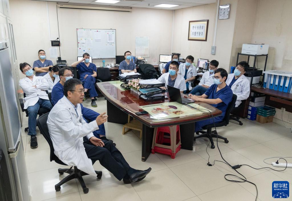 11月11日,在北京大學(xué)腫瘤醫(yī)院肝膽胰外一科醫(yī)生辦公室,邢寶才主任(左前一)組織每周一次的全科查房,討論沈建群等患者的手術(shù)方案。