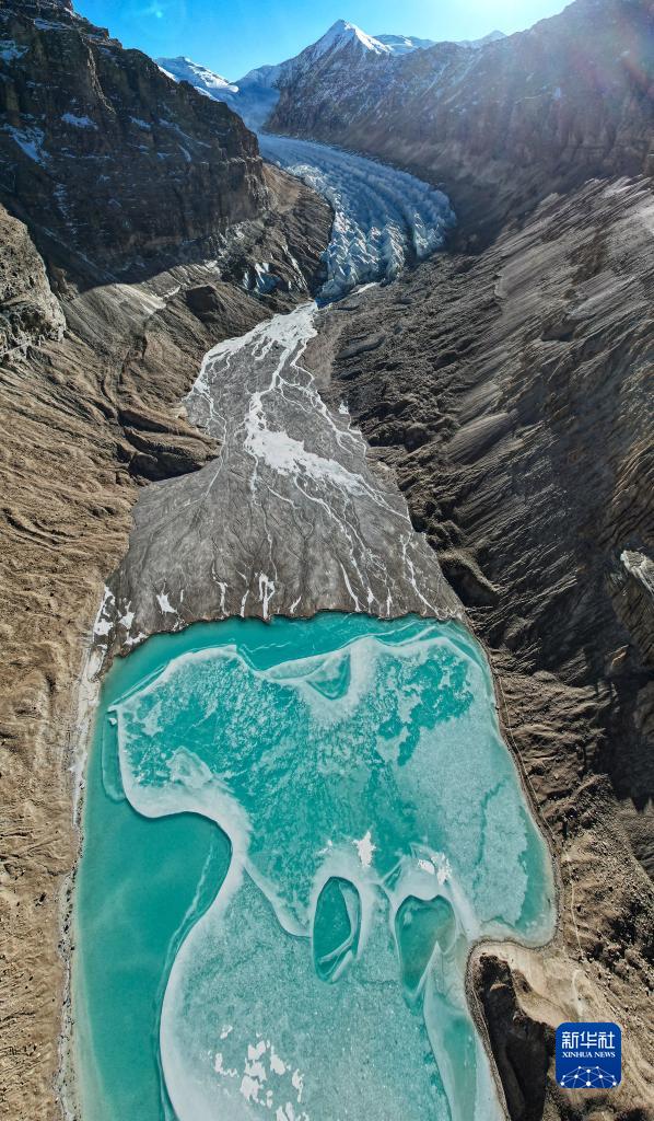 鳥瞰曲登尼瑪冰川(11月27日攝,無人機(jī)照片)。