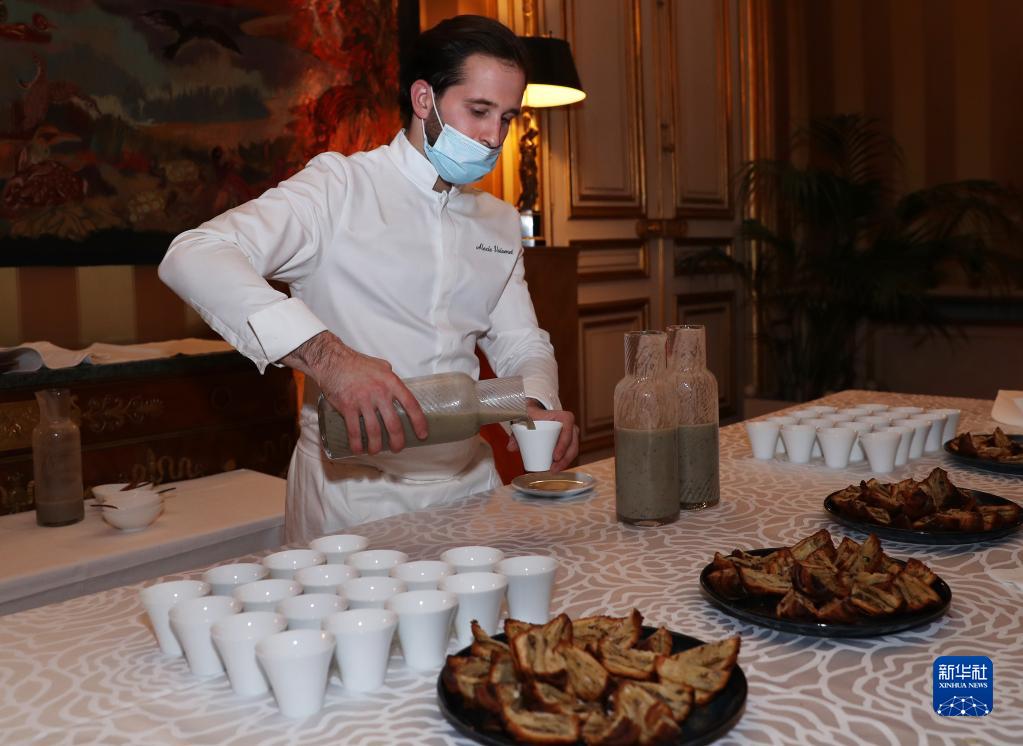 11月29日,在位于巴黎的法國(guó)外交部舉行的LA LISTE國(guó)際美食榜單揭曉活動(dòng)現(xiàn)場(chǎng),大廚為來(lái)賓準(zhǔn)備美食。