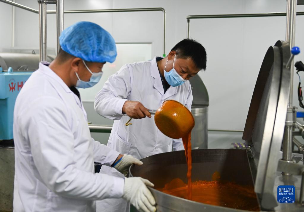 12月2日,在山西省嵐縣界河口鎮(zhèn),鄭二小(右)在查看沙棘汁的成色。新華社記者 柴婷 攝