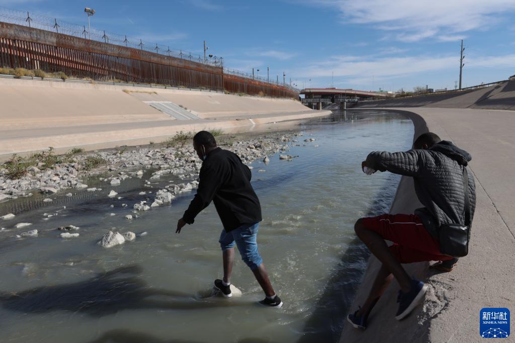 12月7日在墨西哥華雷斯城拍攝的照片顯示,移民試圖通過美墨邊境的布拉沃河進入美國。