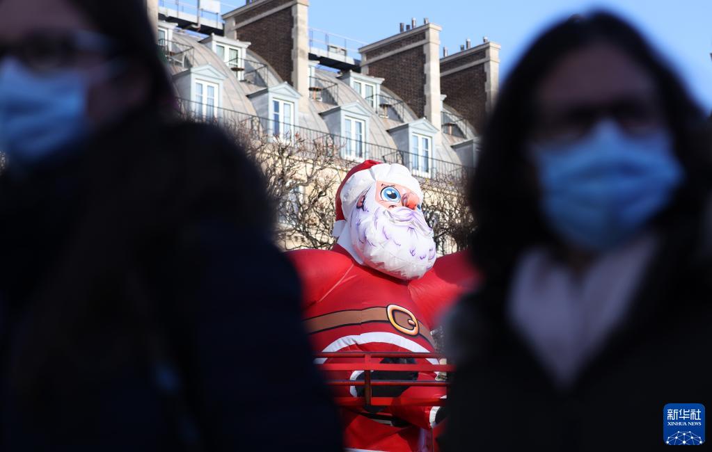 12月9日,人們戴口罩參觀法國巴黎一處圣誕市場。