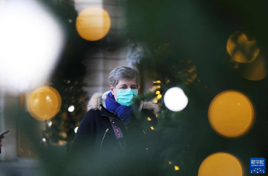 12月9日,一名女子戴口罩走在法國(guó)巴黎街頭。