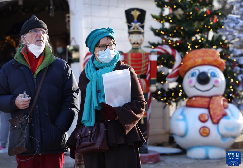12月9日,人們戴口罩參觀法國巴黎一處圣誕市場。