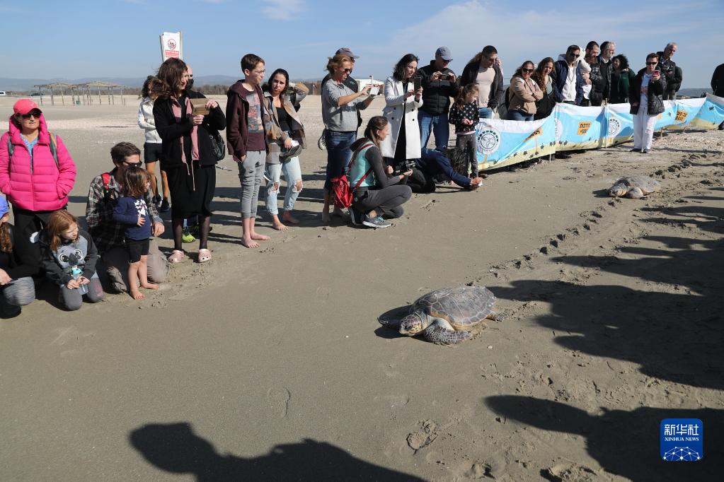 12月10日,在以色列北部城市海法附近的海灘,經過以色列海龜救助組織治療后痊愈的海龜被放歸大海。