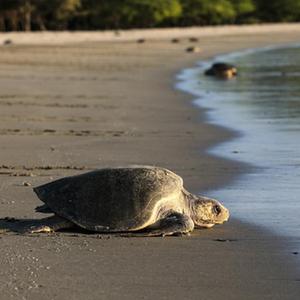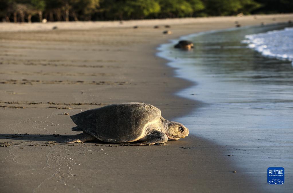 這是12月5日在尼加拉瓜南圣胡安灣的拉弗洛爾海灘自然保護區(qū)拍攝的海龜。