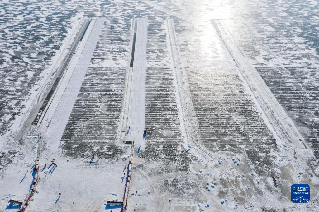 目前,黑龍江哈爾濱冰雪大世界的采冰和建設工作正加緊進行。為保證足夠的優質冰供給,采冰人每天在松花江哈爾濱段封凍的江面上裁冰、采冰。