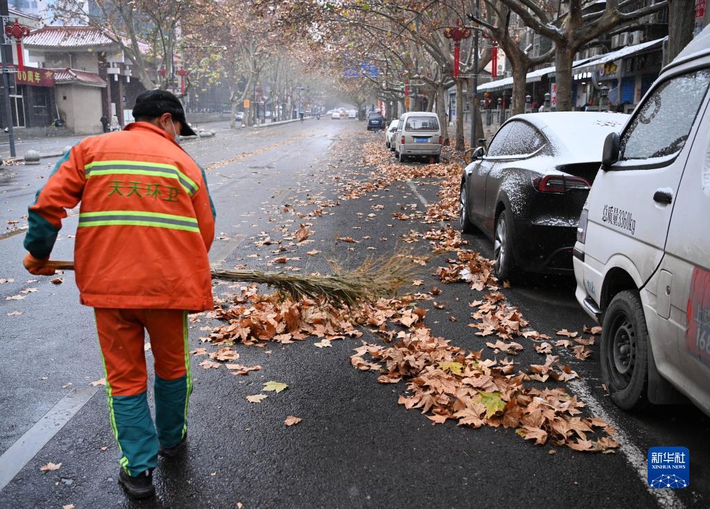 12月25日,環(huán)衛(wèi)工人在空闊的西安市建設(shè)路上清掃衛(wèi)生。
