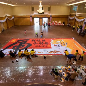 為迎接農歷虎年的到來,文冬當地一家華人團體邀請畫家和學生一起創作了一幅11.5米長、4.5米寬的老虎年畫。新華社發(張紋綜攝)