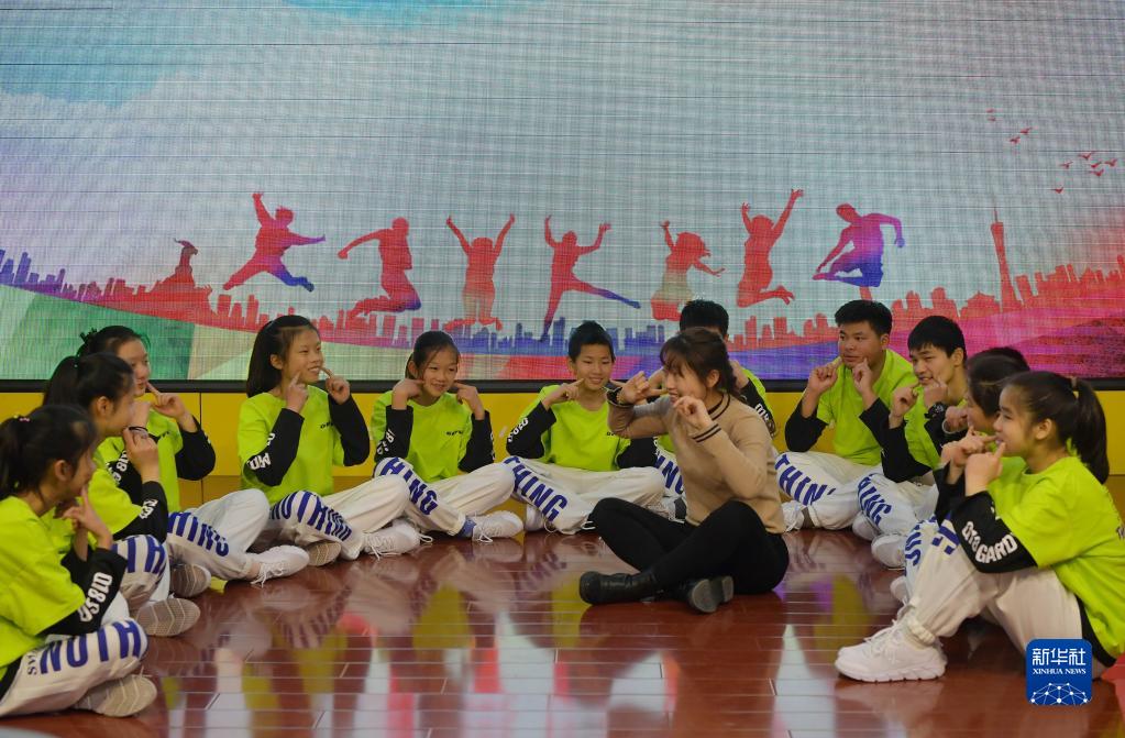 在江西省宜春市特殊教育學(xué)校,樊海艷和聽障學(xué)生們一起用手語交流、排練舞蹈(12月28日攝)。