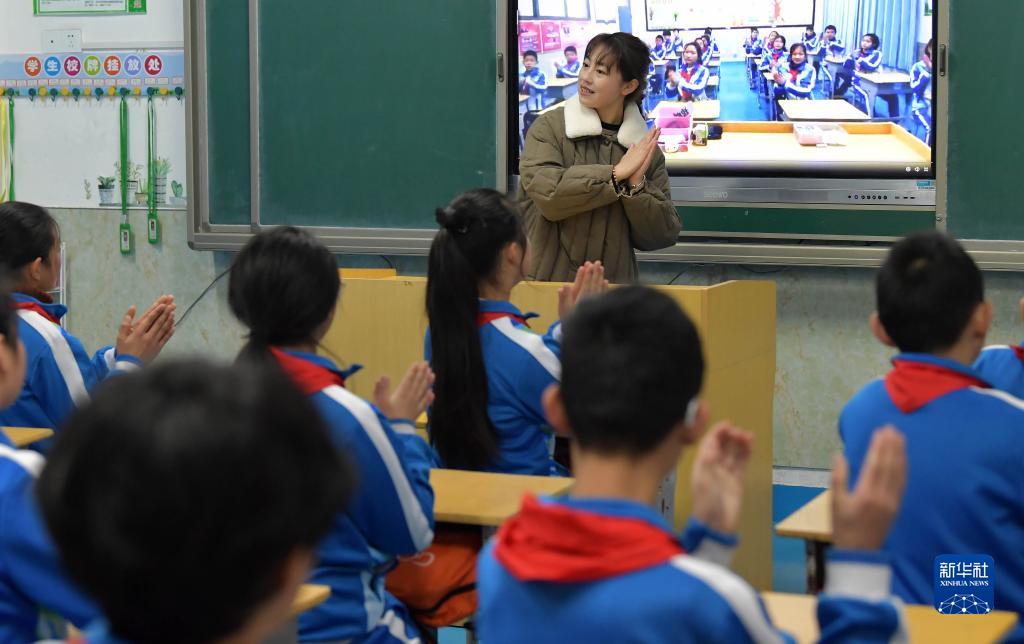 在江西省宜春市特殊教育學校聽障班教室,樊海艷和學生們在課間休息時練習舞蹈動作,這是樊海艷自創的課間操(12月28日攝)。