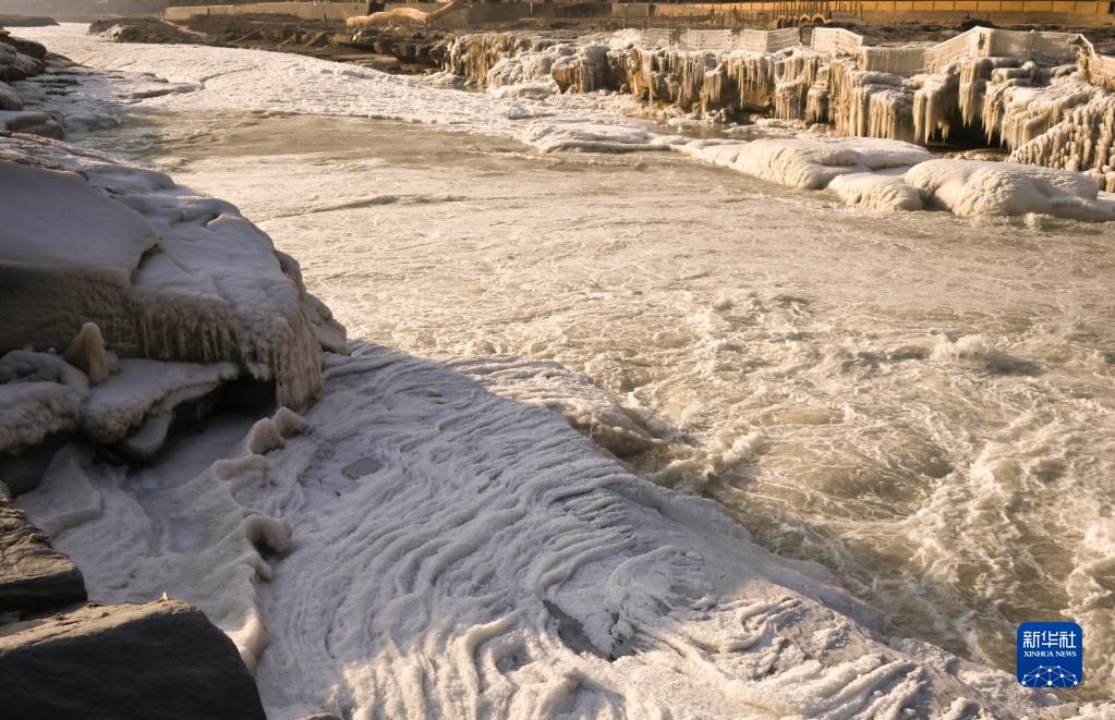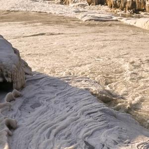 近日,隨著氣溫逐漸降低,黃河晉陜峽谷流凌密度持續增大,大量流凌堆積,壺口段流凌封河的速度明顯加快,壺口瀑布往日30余米高的落差降低至2米左右。