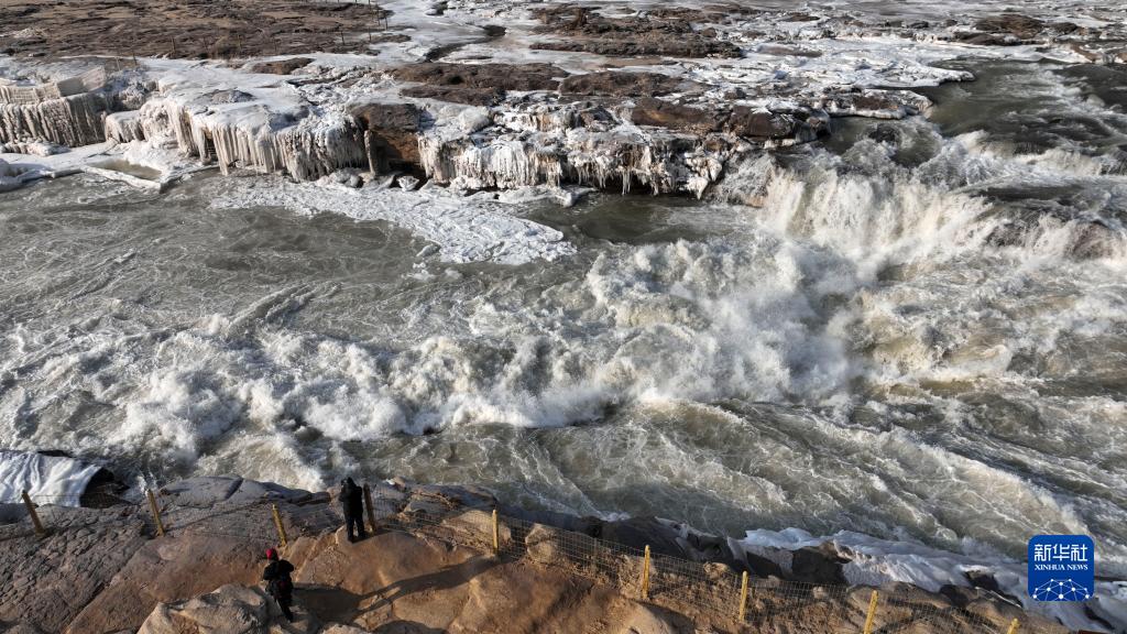 12月30日拍攝的冬日壺口瀑布(無人機拍攝)。