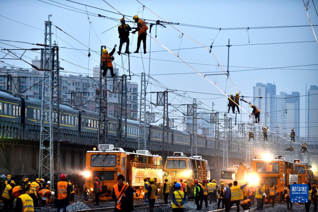 2021年4月12日,在膠濟鐵路黃臺站,中鐵十局千余名工作人員經過6個小時的封鎖要點施工,圓滿完成膠濟鐵路至濟青高鐵聯絡線黃臺站改施工作業。