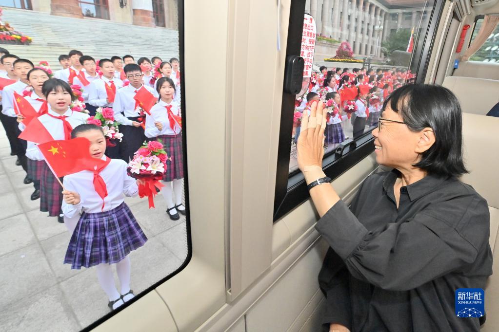 2021年6月29日,慶祝中國共產黨成立100周年“七一勛章”頒授儀式在北京人民大會堂金色大廳隆重舉行。這是“七一勛章”獲得者張桂梅向青少年致意。