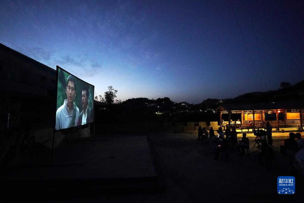 2021年8月10日,山西省柳林縣三交鎮高家焉村村民在觀看露天電影。40多年來,三交鎮電影放映隊累計為村民們播放了上萬部影片。