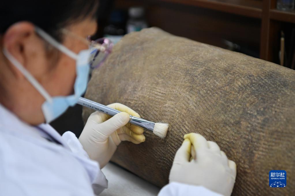 2021年12月16日,工作人員對江村大墓出土的文物進行清理。江村大墓因位于西安市灞橋區江村而得名。經過持續勘探及對大墓周邊部分外藏坑的搶救發掘,基本確認這座大墓為漢文帝陵墓。