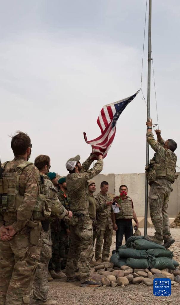 2021年5月2日,美軍士兵在阿富汗赫爾曼德省一處軍事基地降下美國國旗,將基地移交給阿富汗方面。美國和北約軍隊2021年5月1日正式啟動從阿富汗撤軍行動。
