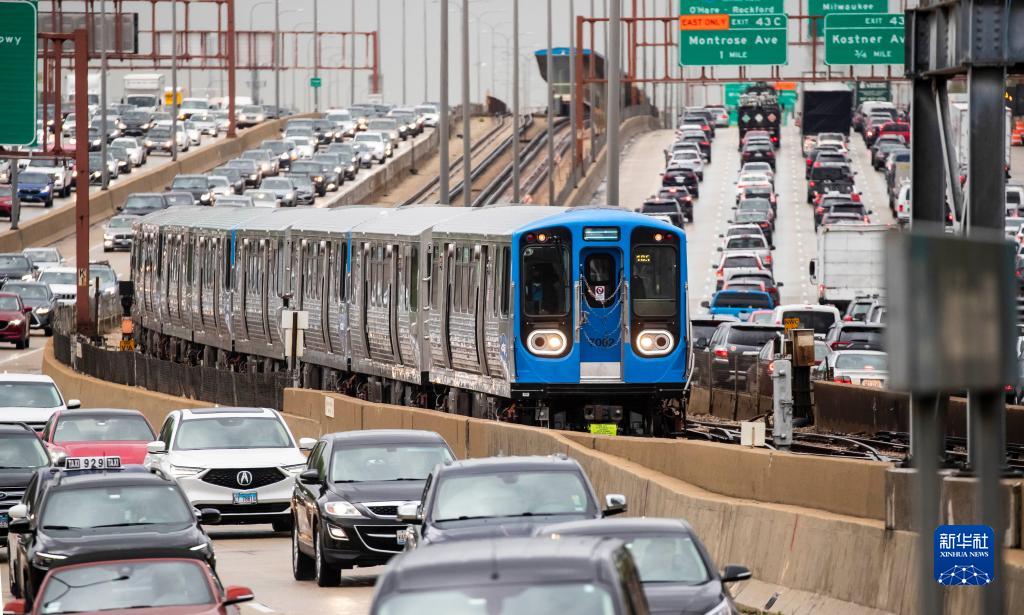 2021年5月6日,掛有7000系列車廂的地鐵列車在美國(guó)芝加哥載客試運(yùn)行。7000系列地鐵車廂由中國(guó)中車青島四方機(jī)車車輛股份有限公司(中車四方)在美國(guó)制造組裝。