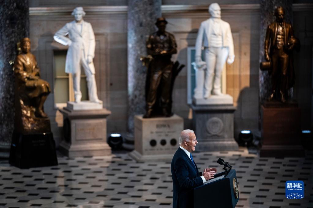 1月6日,美國總統拜登在華盛頓國會大廈發表講話,紀念國會山騷亂事件一周年。