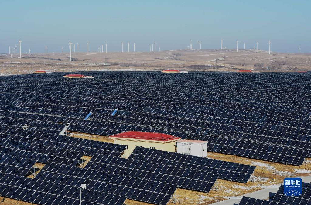 這是張家口壩上地區(qū)的國家風(fēng)光儲輸示范電站內(nèi)的風(fēng)光互補發(fā)電場(2017年12月27日攝)。