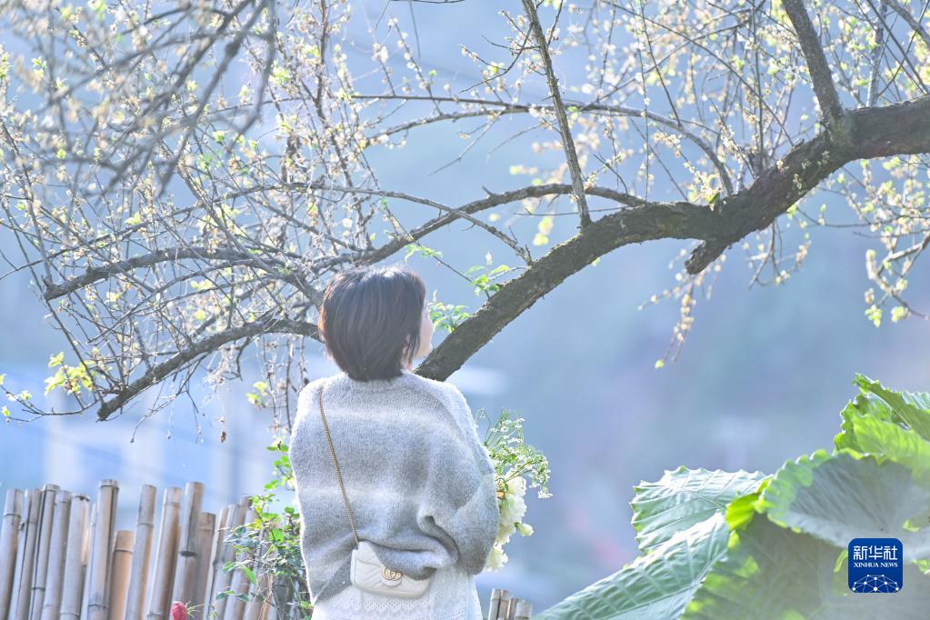 1月13日,游客在福建省福州市永泰縣葛嶺鎮(zhèn)溪洋村賞梅。新華社發(fā)(周義 攝)