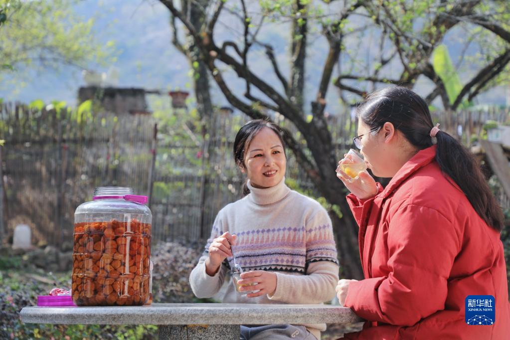 1月13日,游客在福建省福州市永泰縣葛嶺鎮(zhèn)溪洋村一家民宿內(nèi)品嘗青梅汁。新華社發(fā)(蔡毓靈 攝)