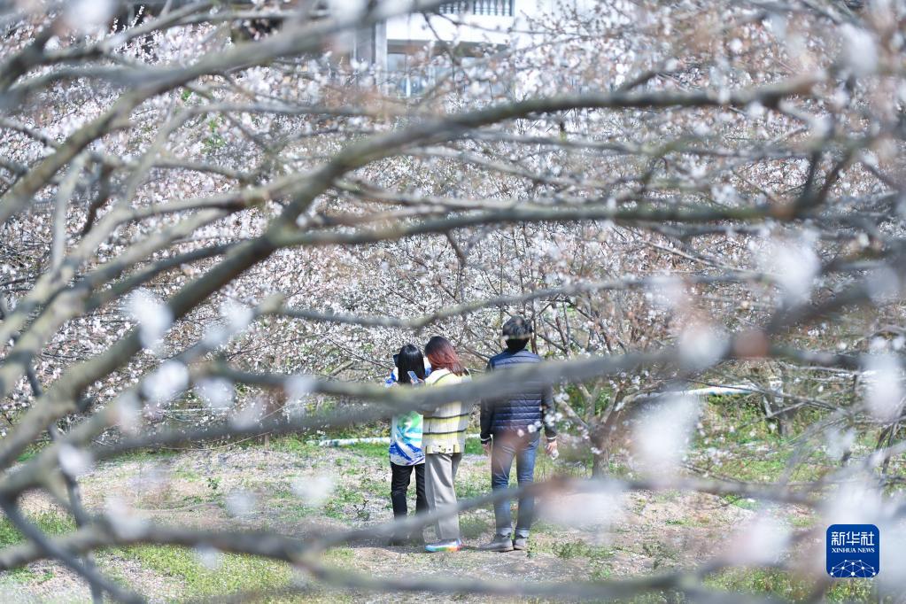 1月13日,游客在福建省福州市永泰縣葛嶺鎮(zhèn)溪洋村賞梅。新華社發(fā)(周義 攝)