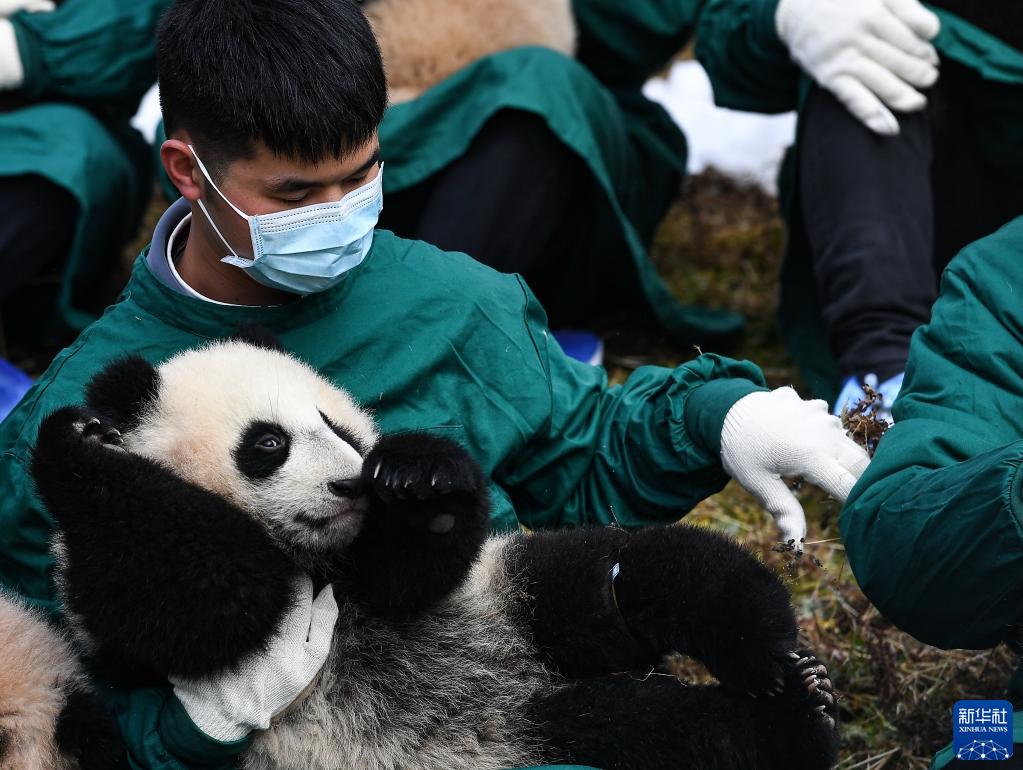 在新春佳節即將到來之際,中國大熊貓保護研究中心20只“2021級”熊貓寶寶亮相臥龍神樹坪基地,向全國人民送上新春祝福。