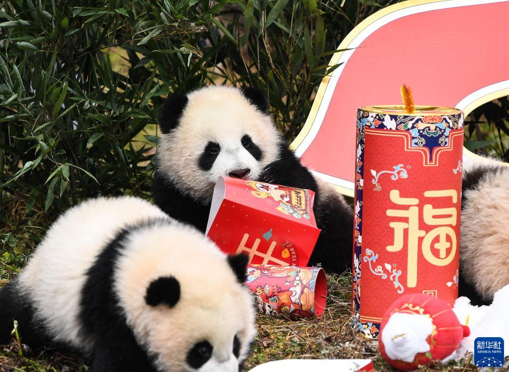在新春佳節即將到來之際,中國大熊貓保護研究中心20只“2021級”熊貓寶寶亮相臥龍神樹坪基地,向全國人民送上新春祝福。