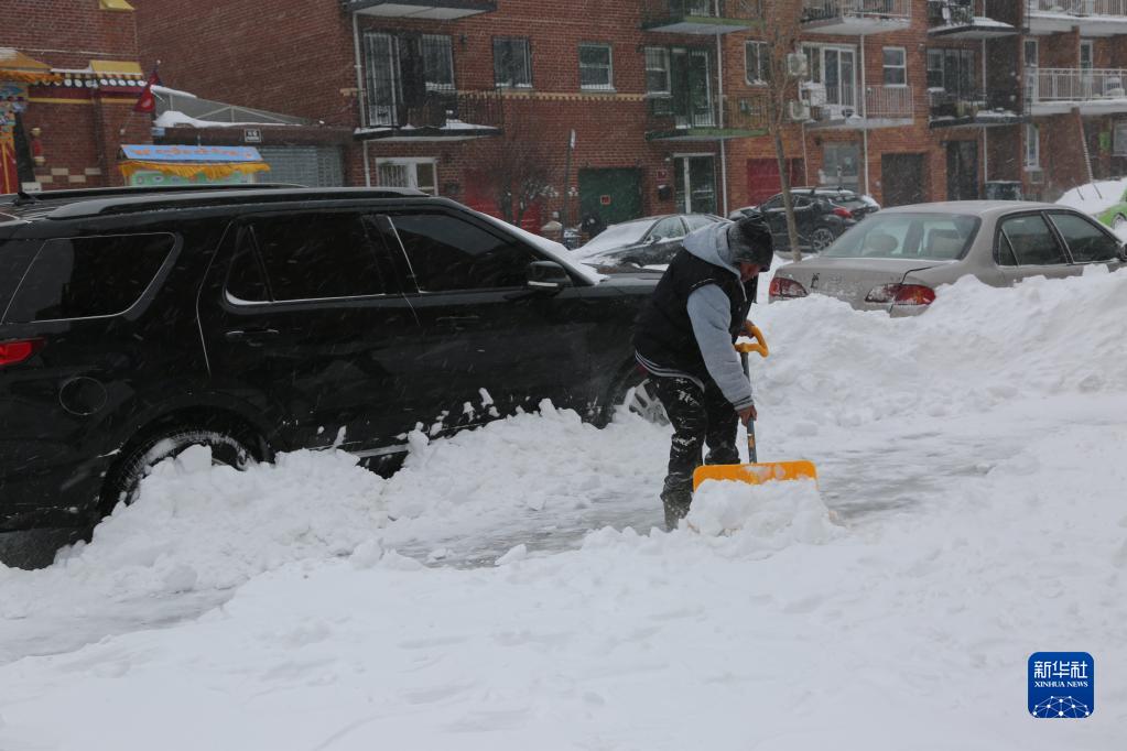 1月29日,一名居民在美國紐約清掃路上積雪。