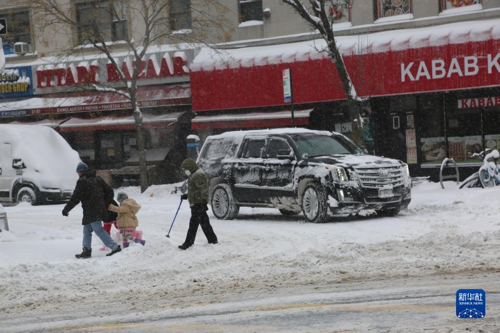 1月29日,在美國紐約,行人穿過積雪的街道。