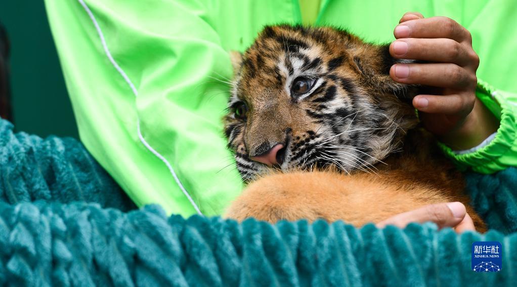 這是在海南熱帶野生動植物園拍攝的虎寶寶“多多”(1月1日攝)。